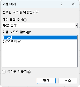 - 다른 통합 문서로 이동/복사: 두 통합 문서를 모두 열고 시트 탭을 드래그